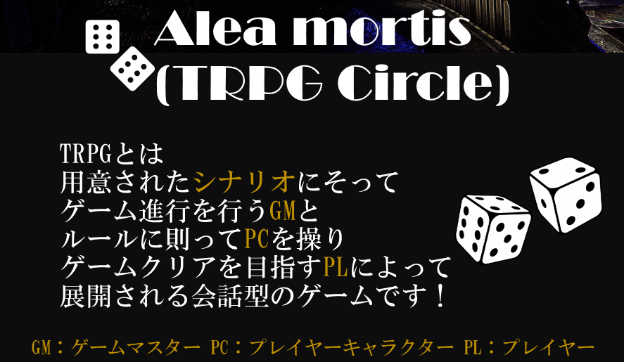 都立大で唯一TRPGを専門とするサークル「Alea mortis」です!