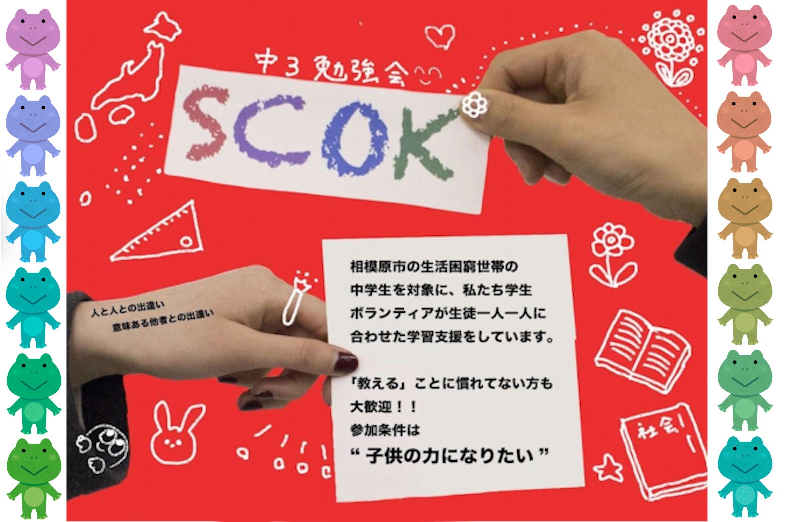 私たちSCOKは、相模原市で学習支援を行っているボランティア団体です。